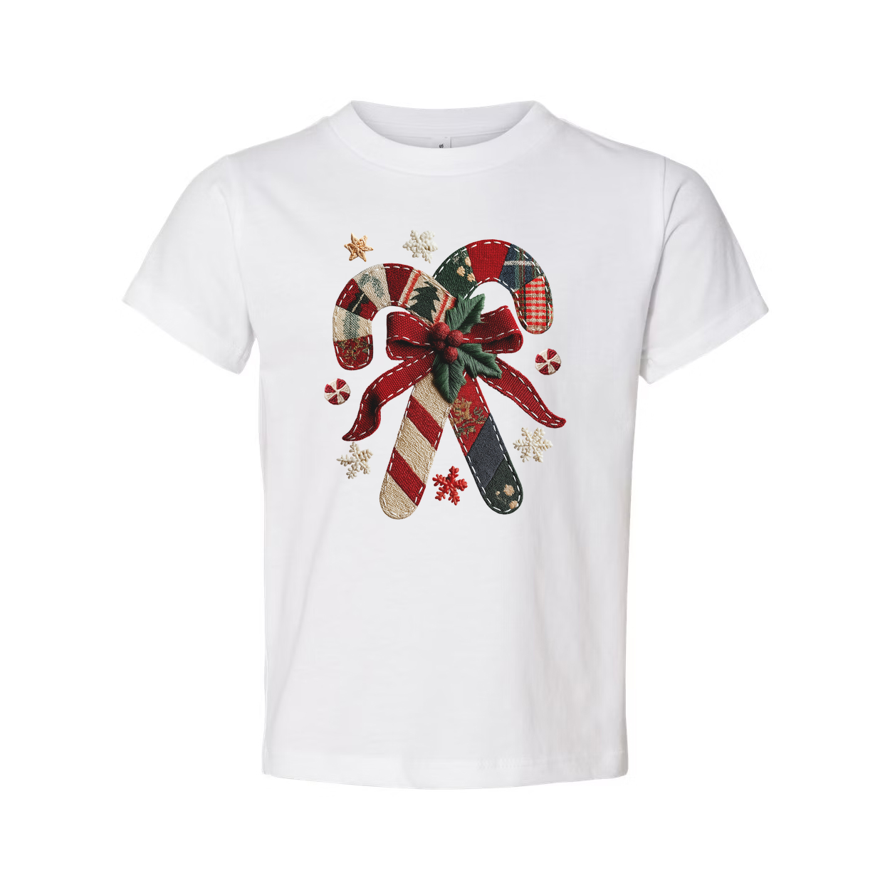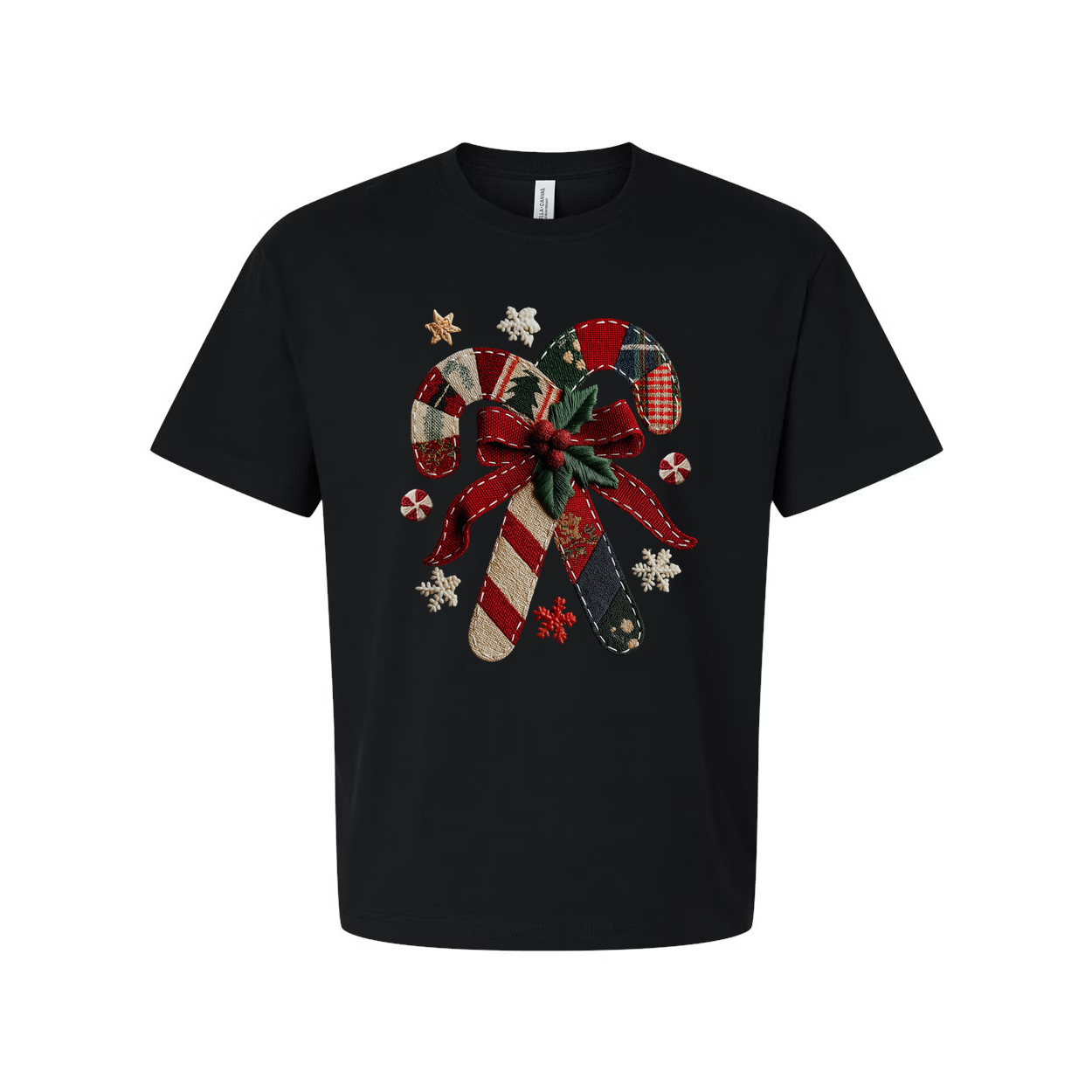 Unisex Christmas Candy Cane Bow Graphic T Shirt With Plaid Red Green Holiday Design