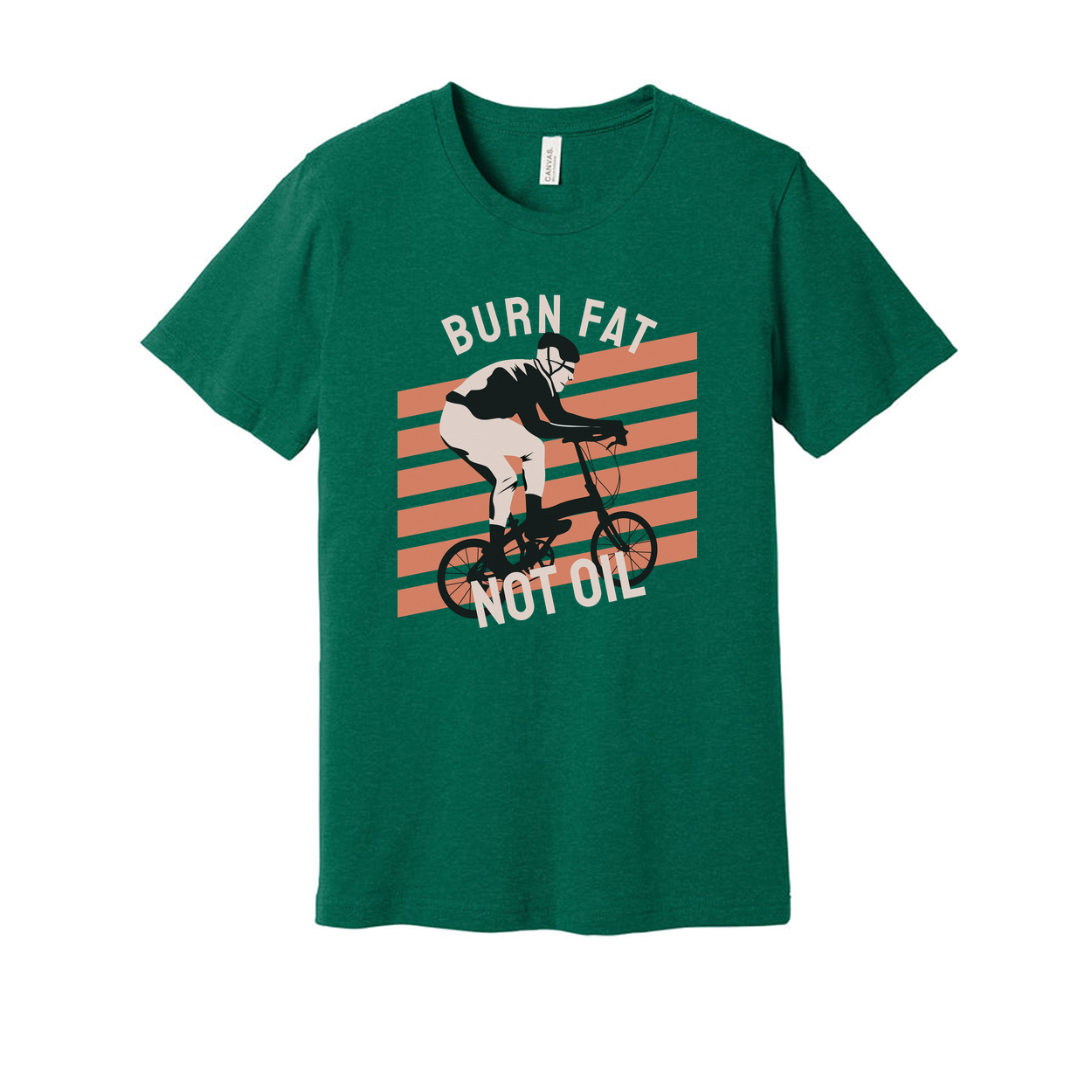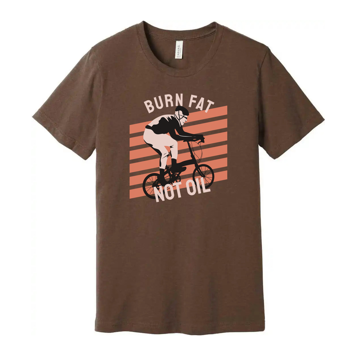 Unisex Cycling Graphic T Shirt With Cyclist Silhouette And Coral Stripes Burn Fat Not Old
