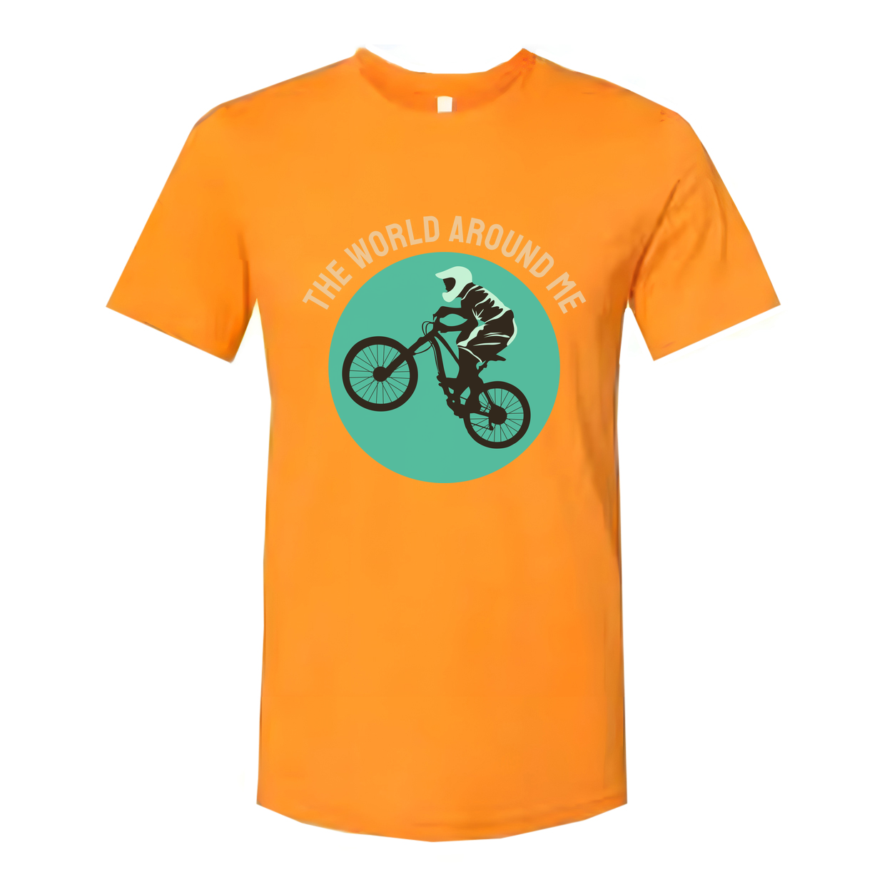 Unisex Cycling Graphic T Shirt With Rider Silhouette Inside Teal Circle Design Artwork