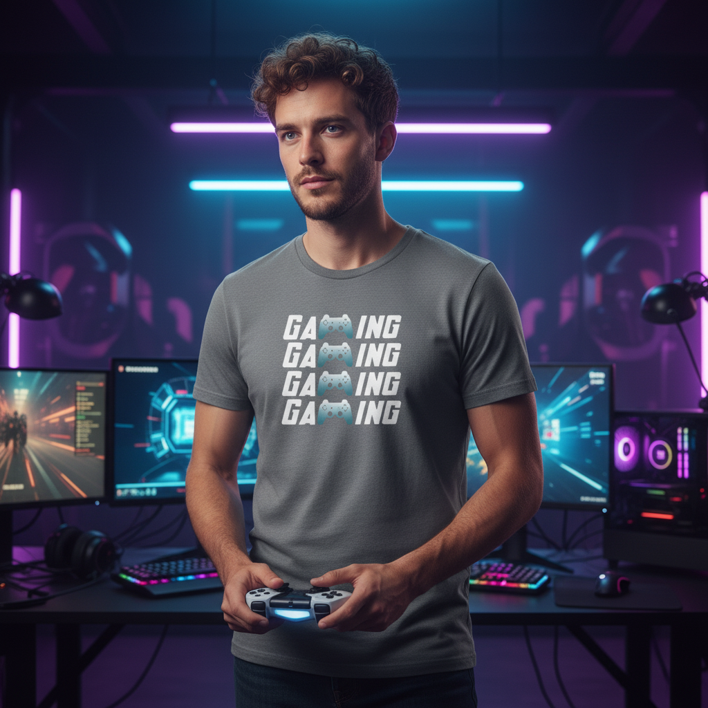 Unisex Gaming Graphic T Shirt With Repeating Controller Icon
