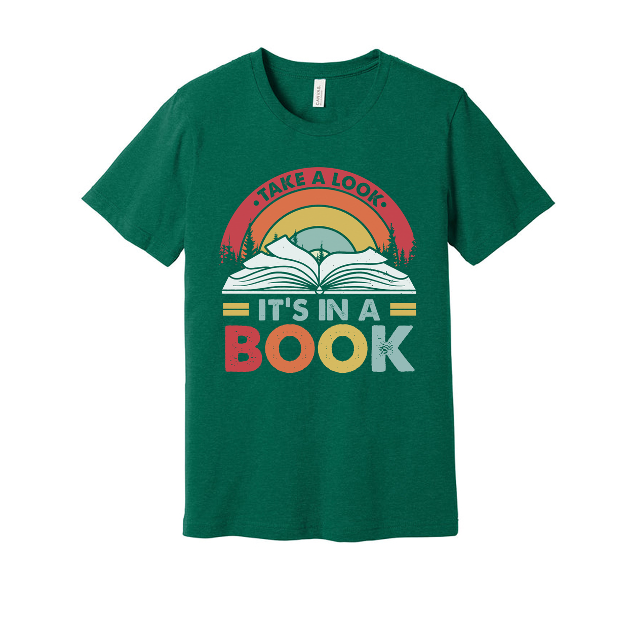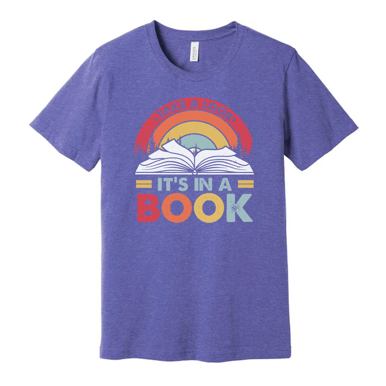 Unisex Graphic T Shirt With Rainbow Arc And Open Book Design Take A Look It's In A Book