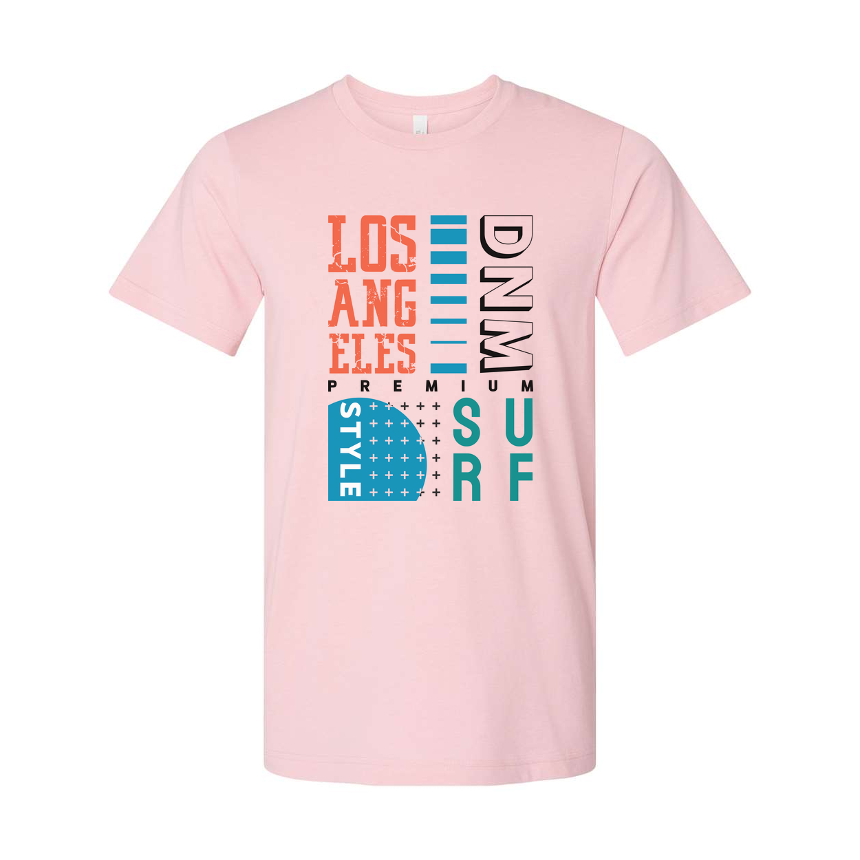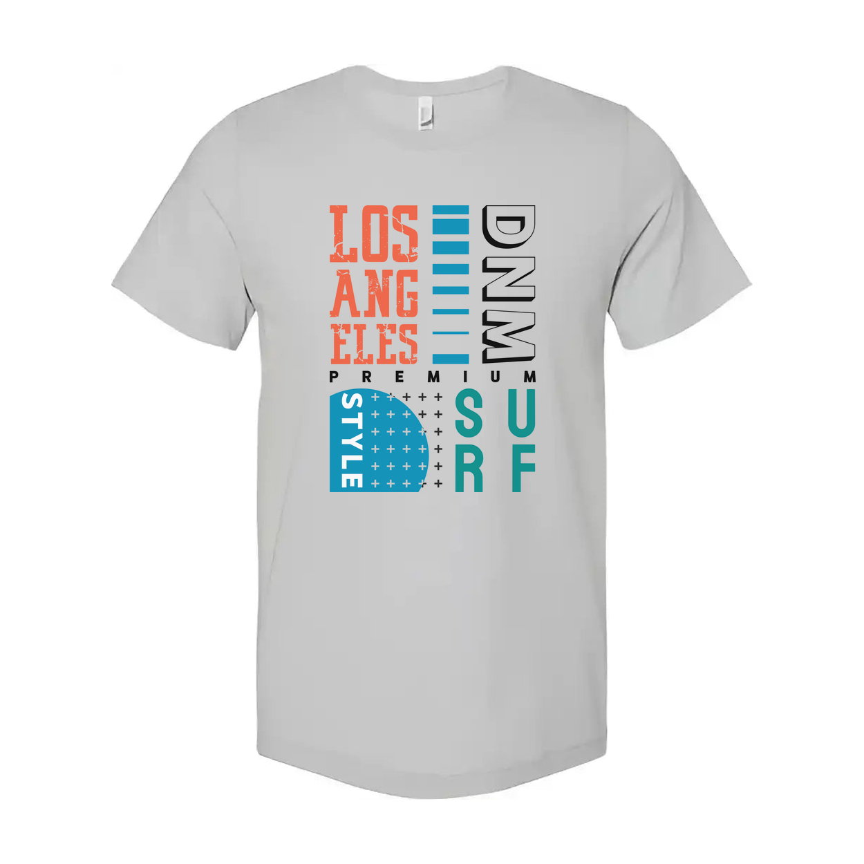 Unisex Graphic Tee Featuring Bold Los Angeles Denim Style Surf Print For Everyday Wear