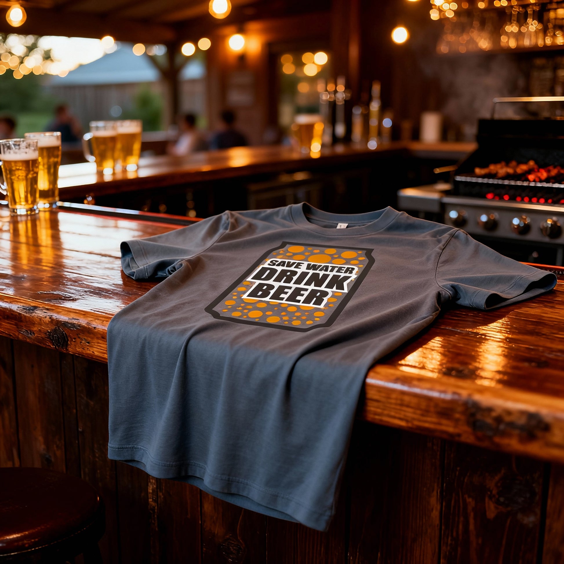 Unisex Graphic Tee With Beer Can Save Water Drink Beer