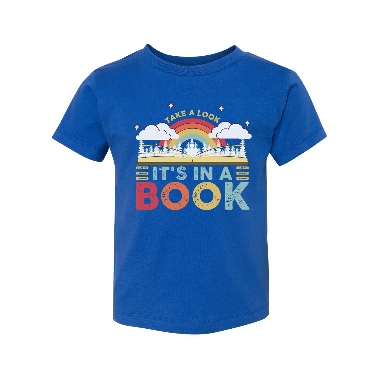 Unisex Graphic Tee With Rainbow Book Design And Take A Look Its In A Book Message For Readers