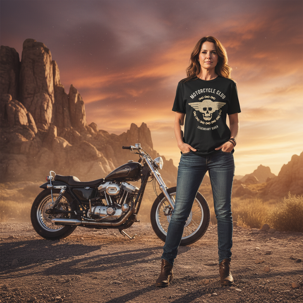 Unisex Motorcycle Club Graphic Tee With Winged Skull Emblem And Chain Design Print
