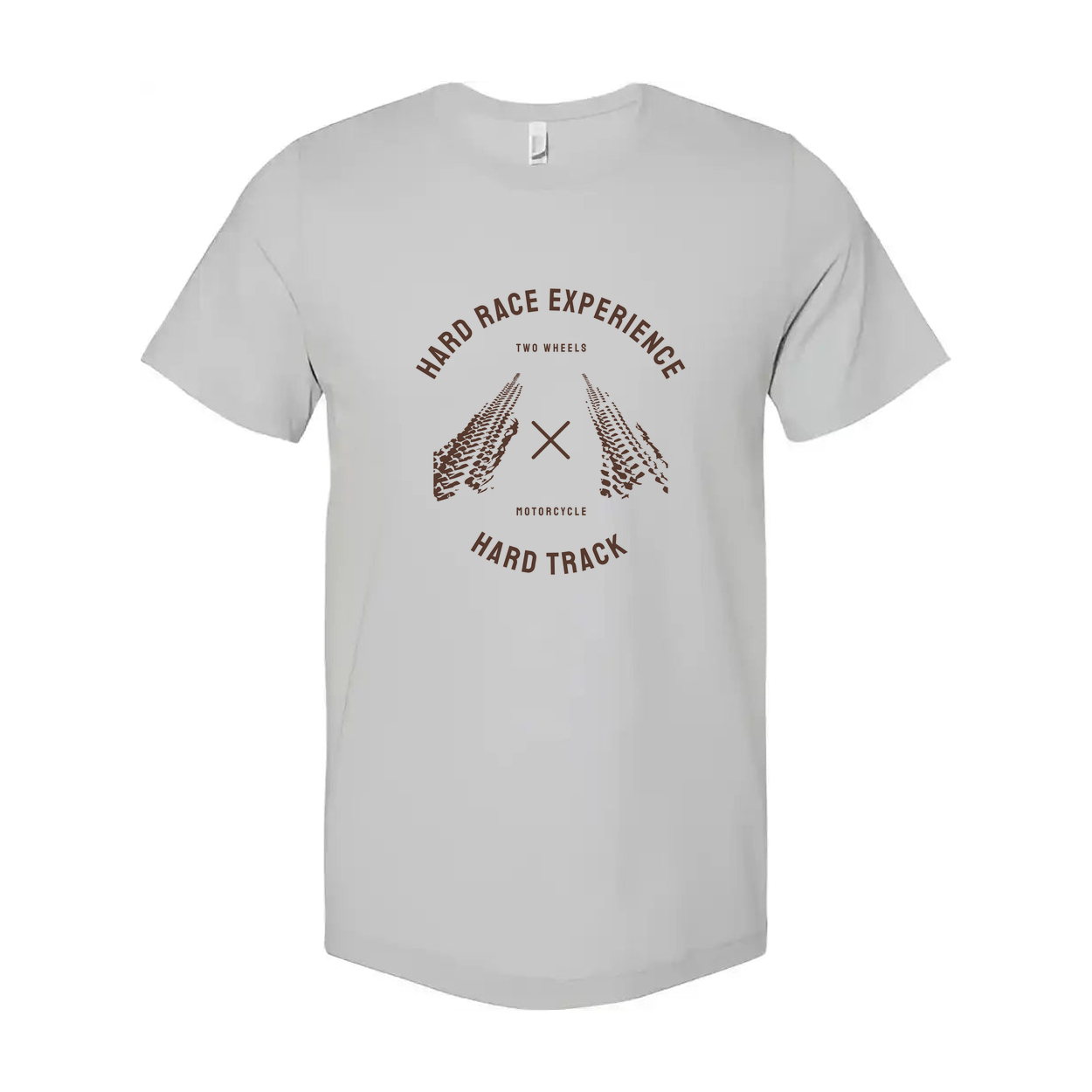 Unisex Motorcycle Track Racing Graphic Tee Featuring Circular Tire Track Design and Two Wheels Motif