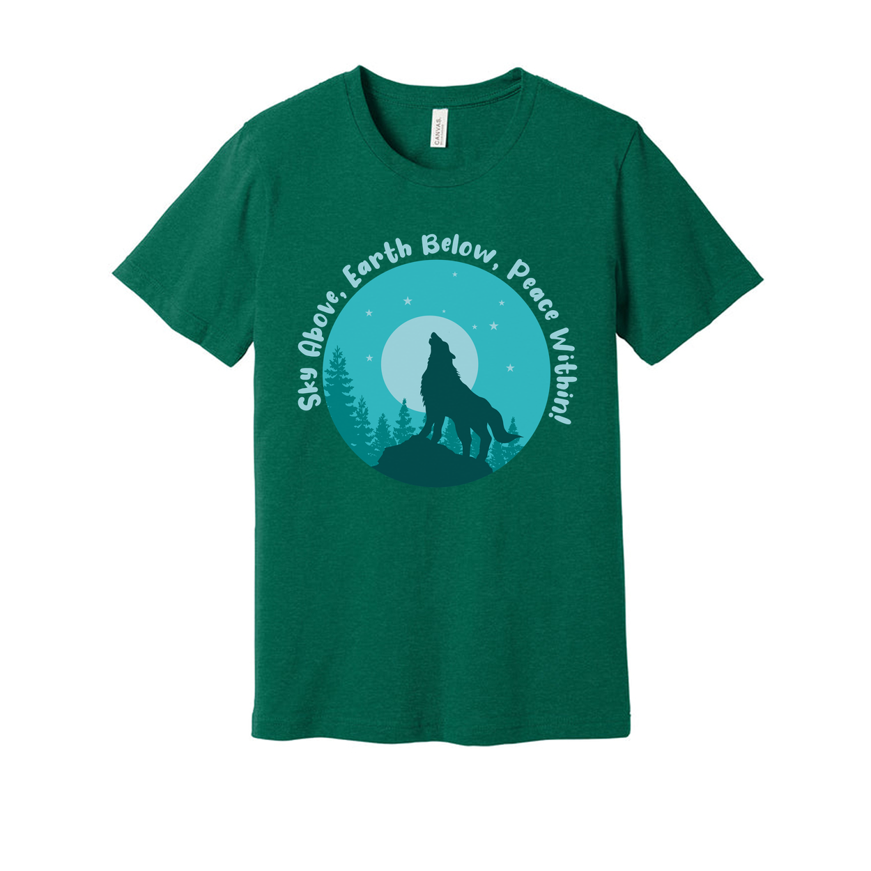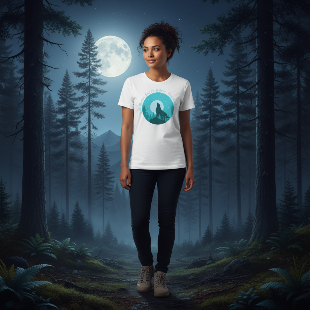 Unisex Outdoor Wolf Howling Graphic T Shirt With Moon Trees And Circular Night Scene