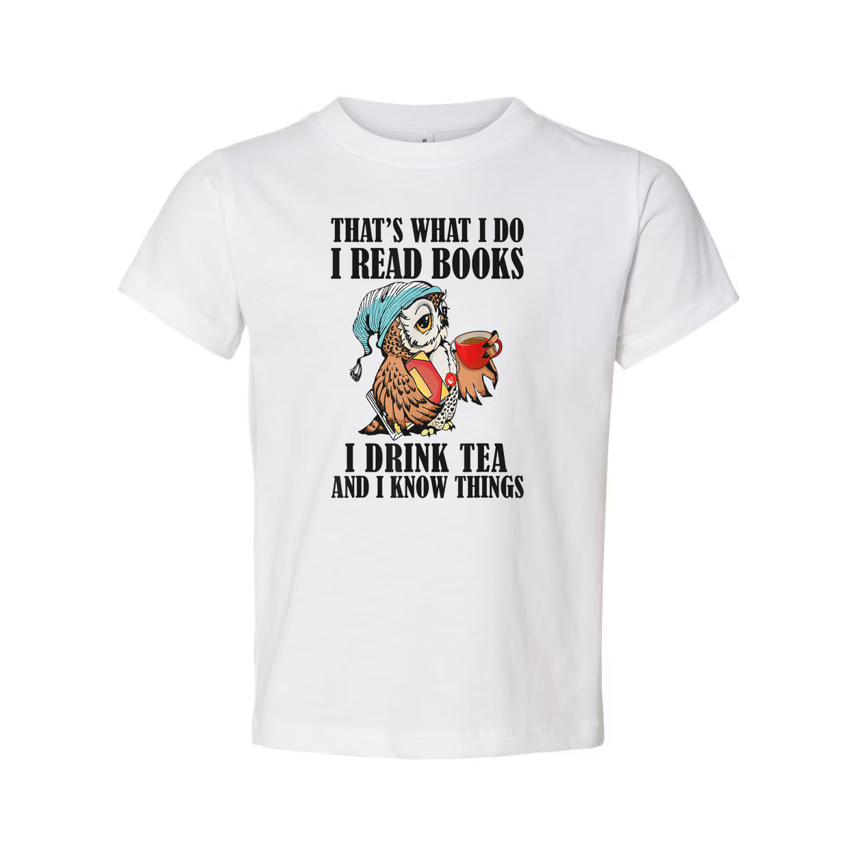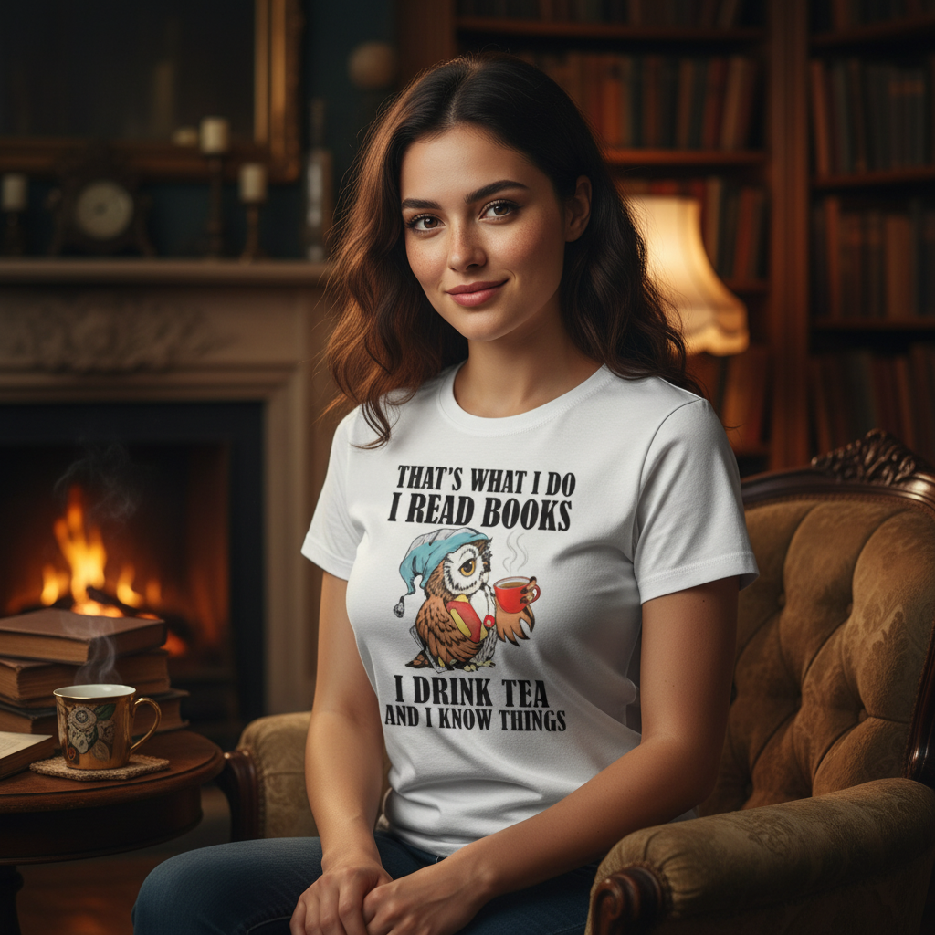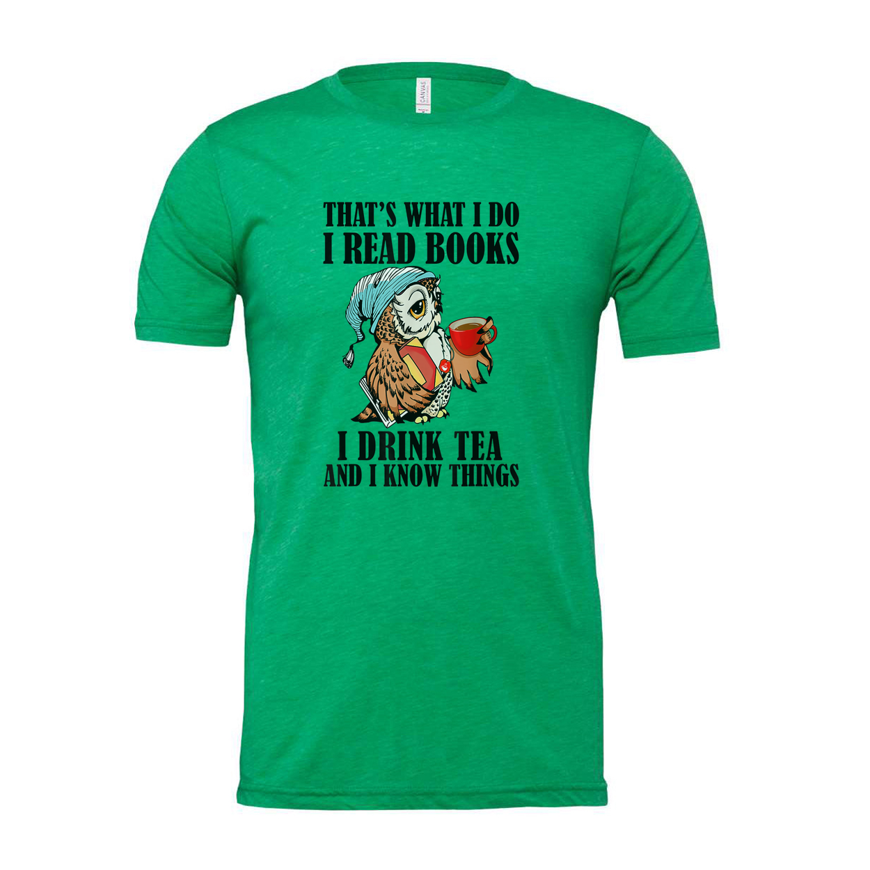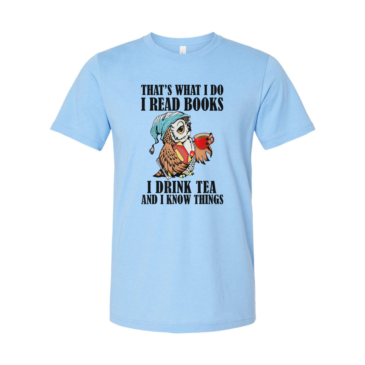 Unisex Owl Reading Books Tee With Tea Cup That's What I Do I Read Books And I Drink Tea And I Know Things