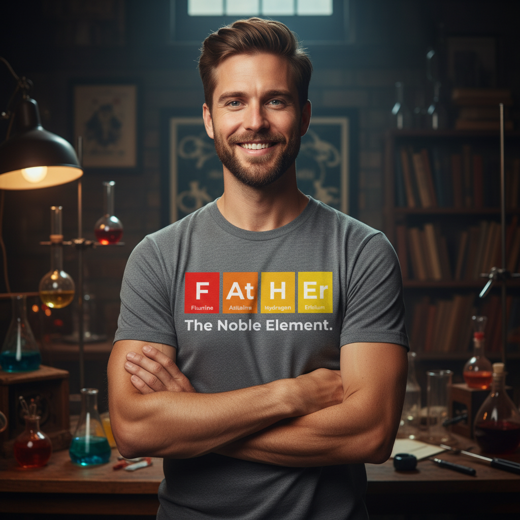 Unisex Science T Shirt Featuring Periodic Table Elements Spelling Father The Noble Element