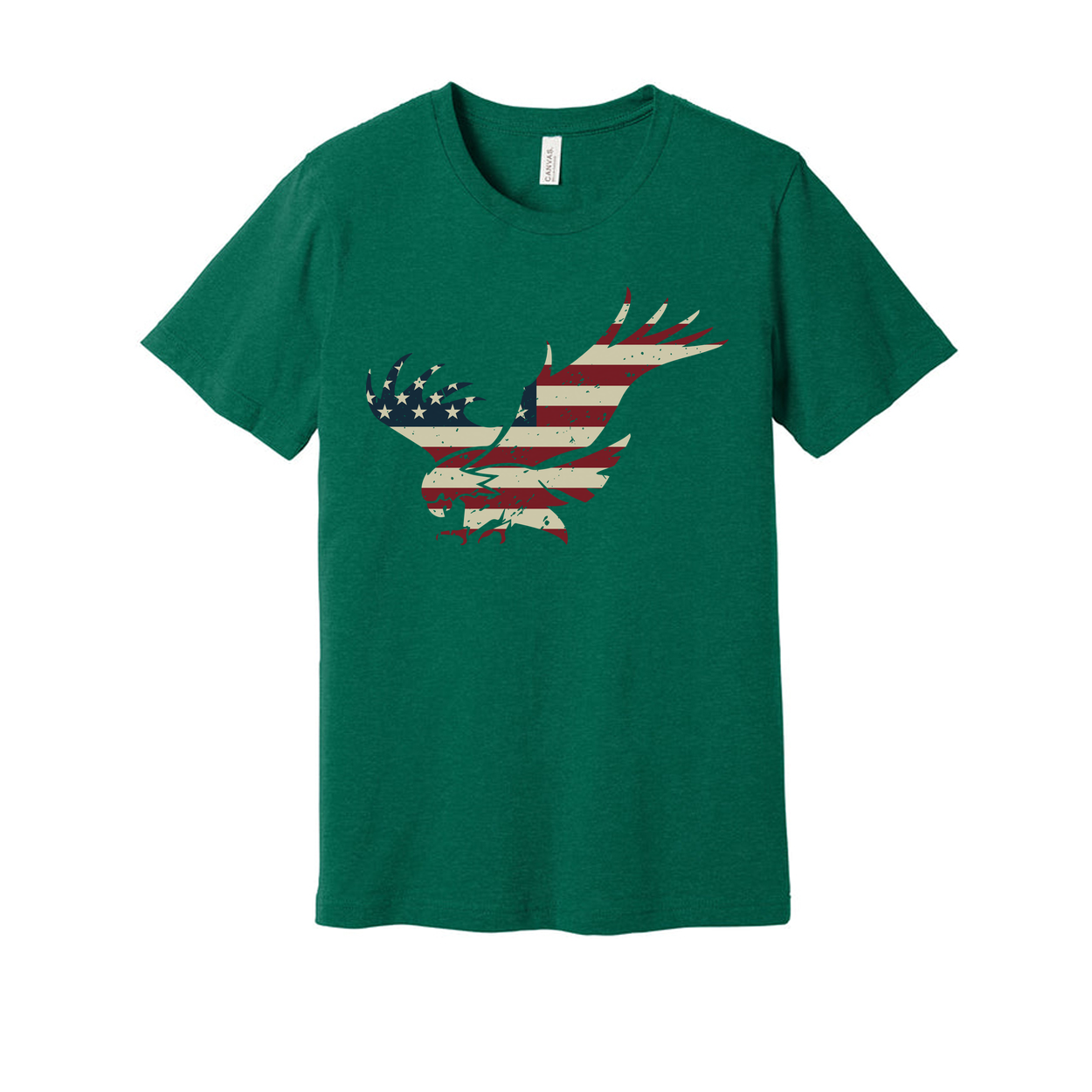 Unisex Short Sleeve Crew Neck T Shirt With Vintage Distressed American Flag Eagle Graphic