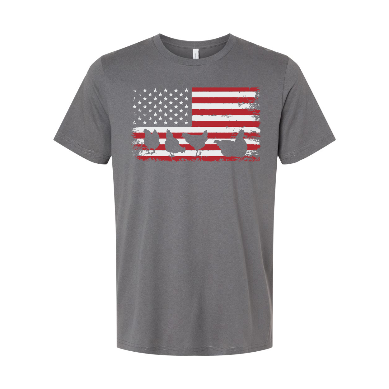 Unisex Short Sleeve T Shirt With Distressed American Flag And Bird Silhouette Design