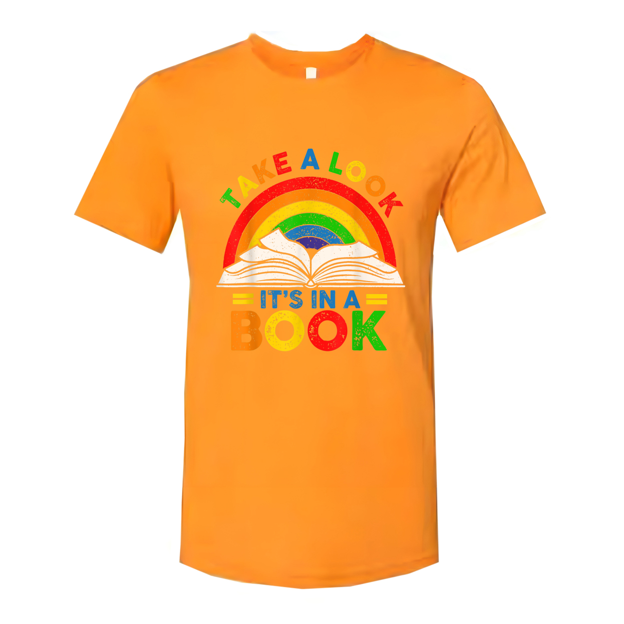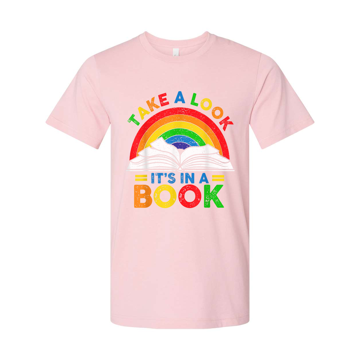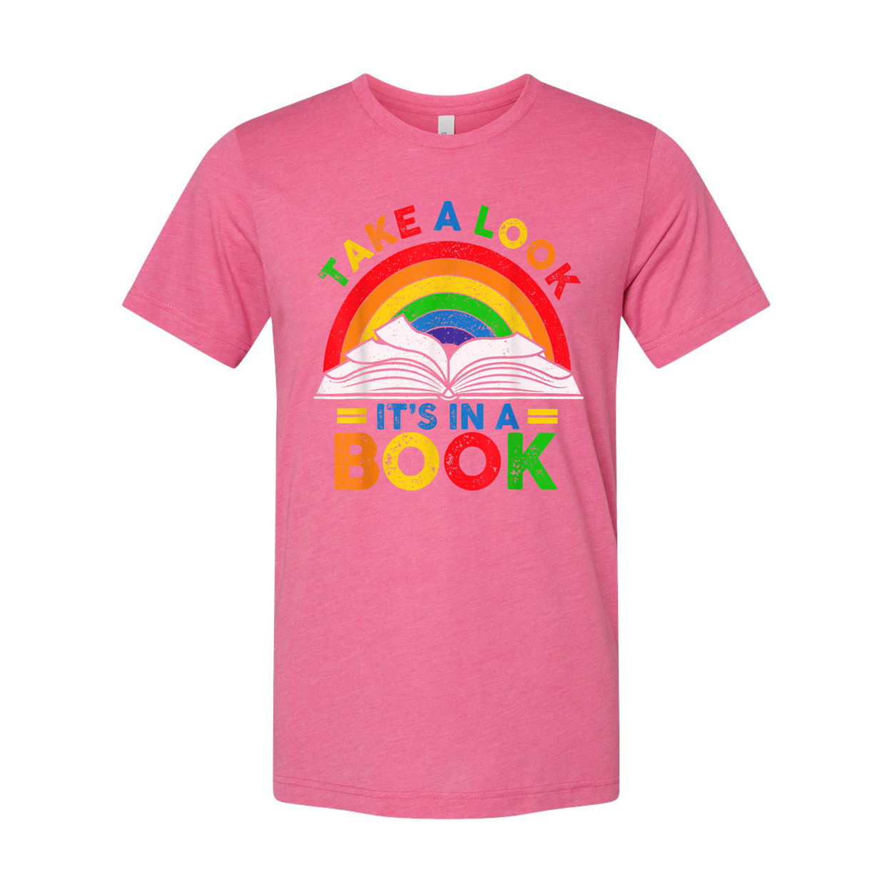Unisex T Shirt Featuring Rainbow Book Graphic Take A Look Its In A Book Tee Design