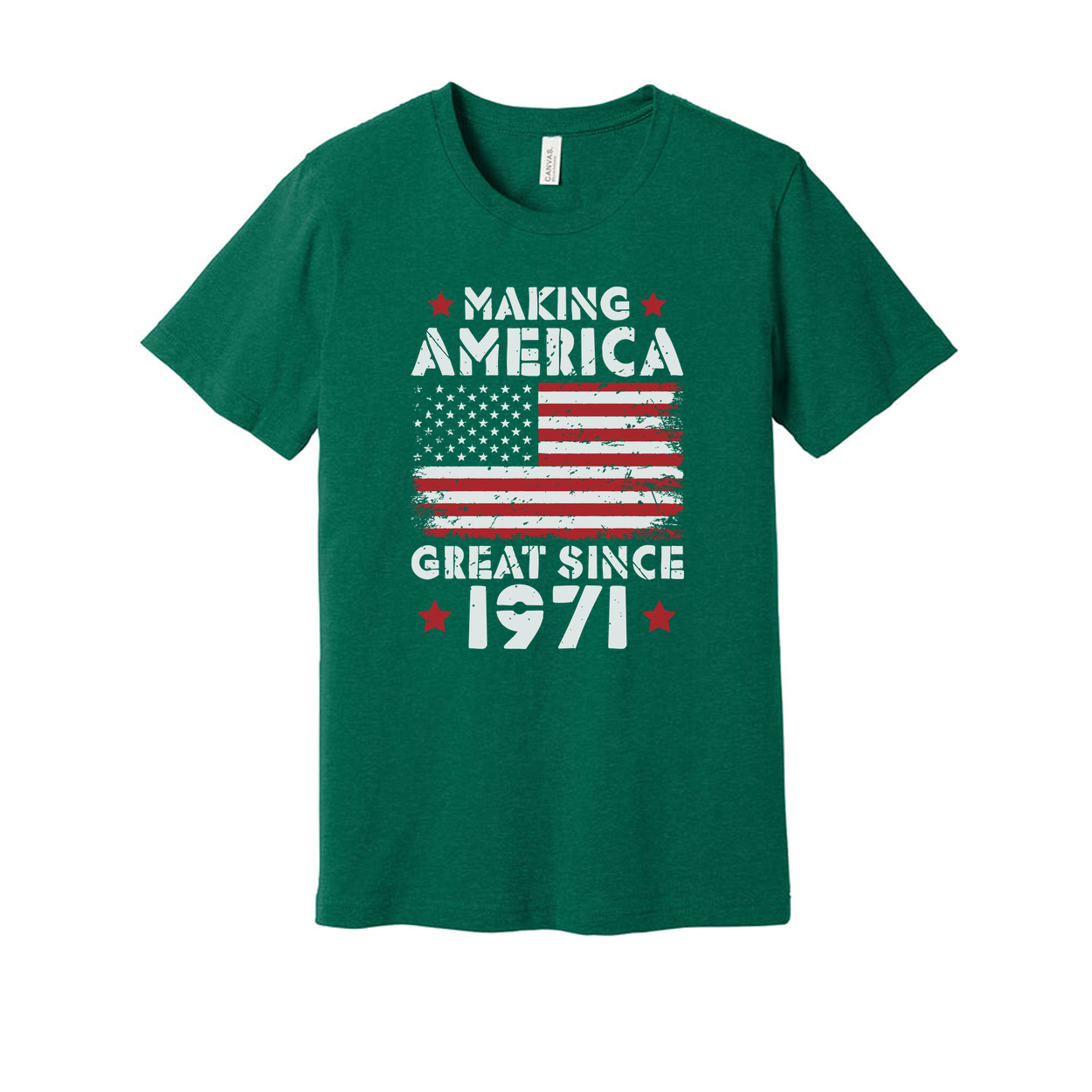 Unisex T Shirt With Distressed American Flag Graphic And Making America Great Since 1971