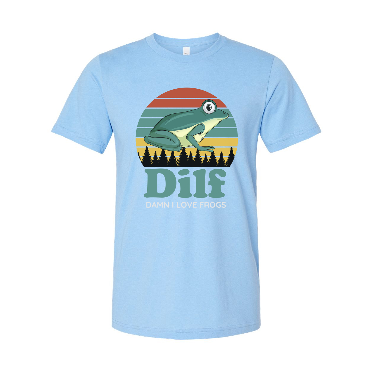 Unisex T Shirt With Frog Illustration Retro Sunset Stripes Forest Silhouette DILF Graphic Design