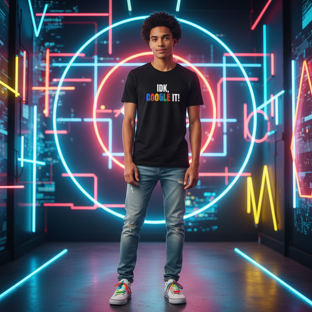 Unisex T Shirt With IDK Google It Slogan Graphic On White Cotton Tee For Casual Wear