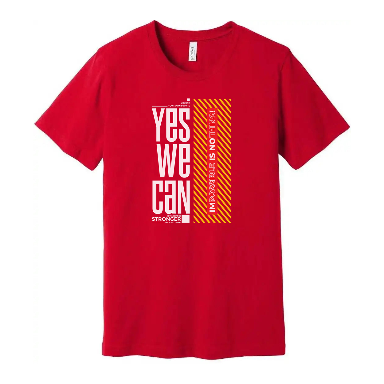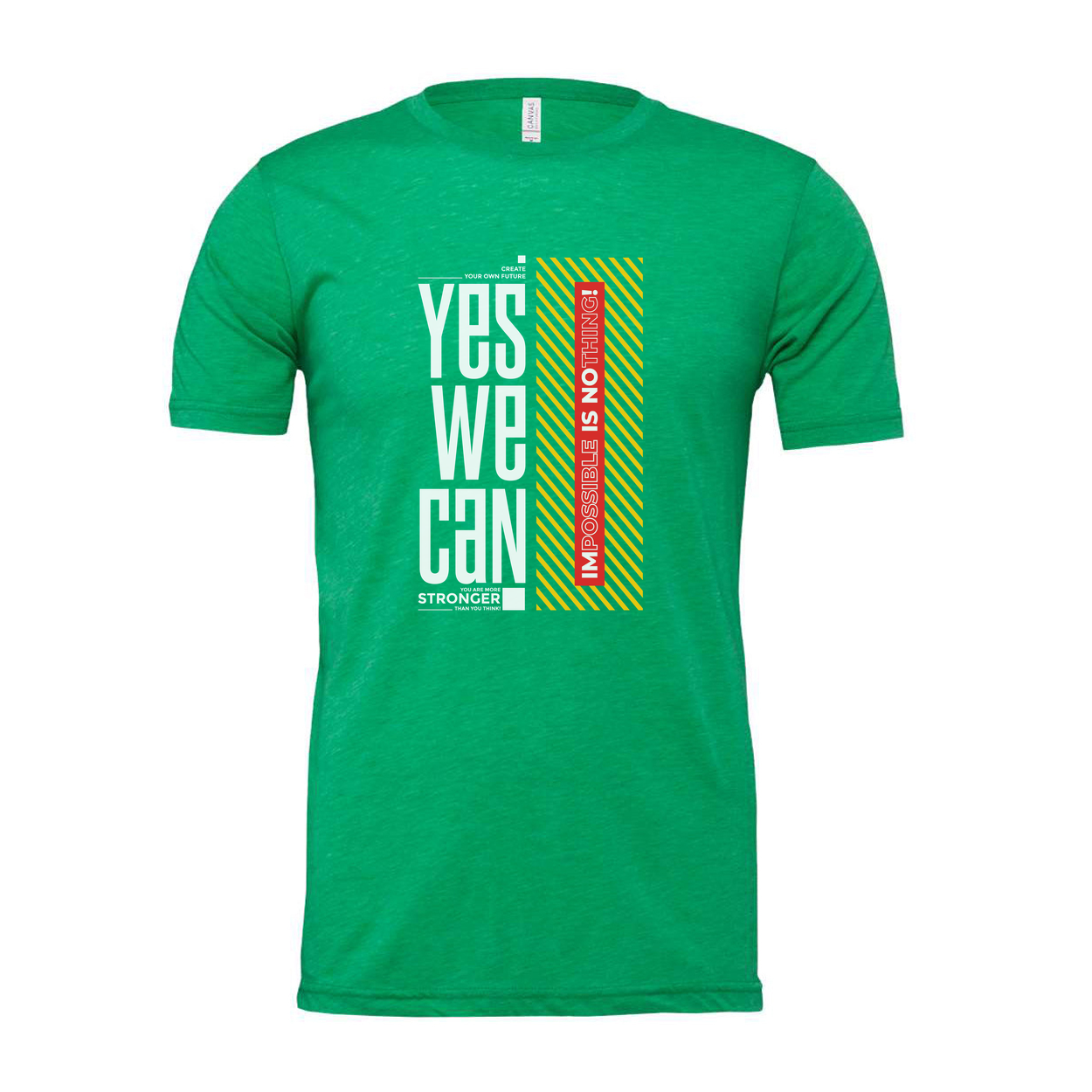 Unisex White T Shirt With Impossible Is Nothing Graphic And Yellow Striped Accent Design
