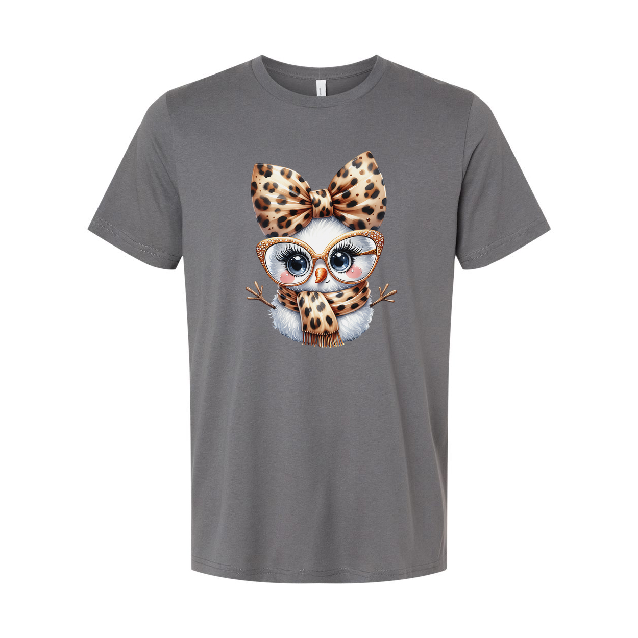 Unisex White T Shirt With Leopard Print Owl Graphic Wearing Bow Glasses And Scarf