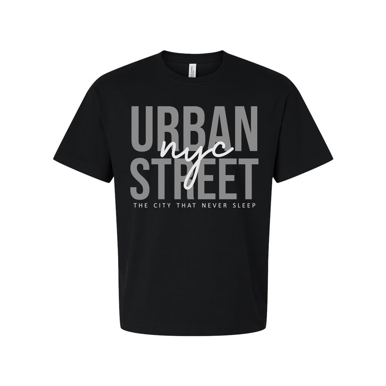 Urban Street Graphic Unisex T Shirt With City That Never Sleep Typography Design For Everyday Wear