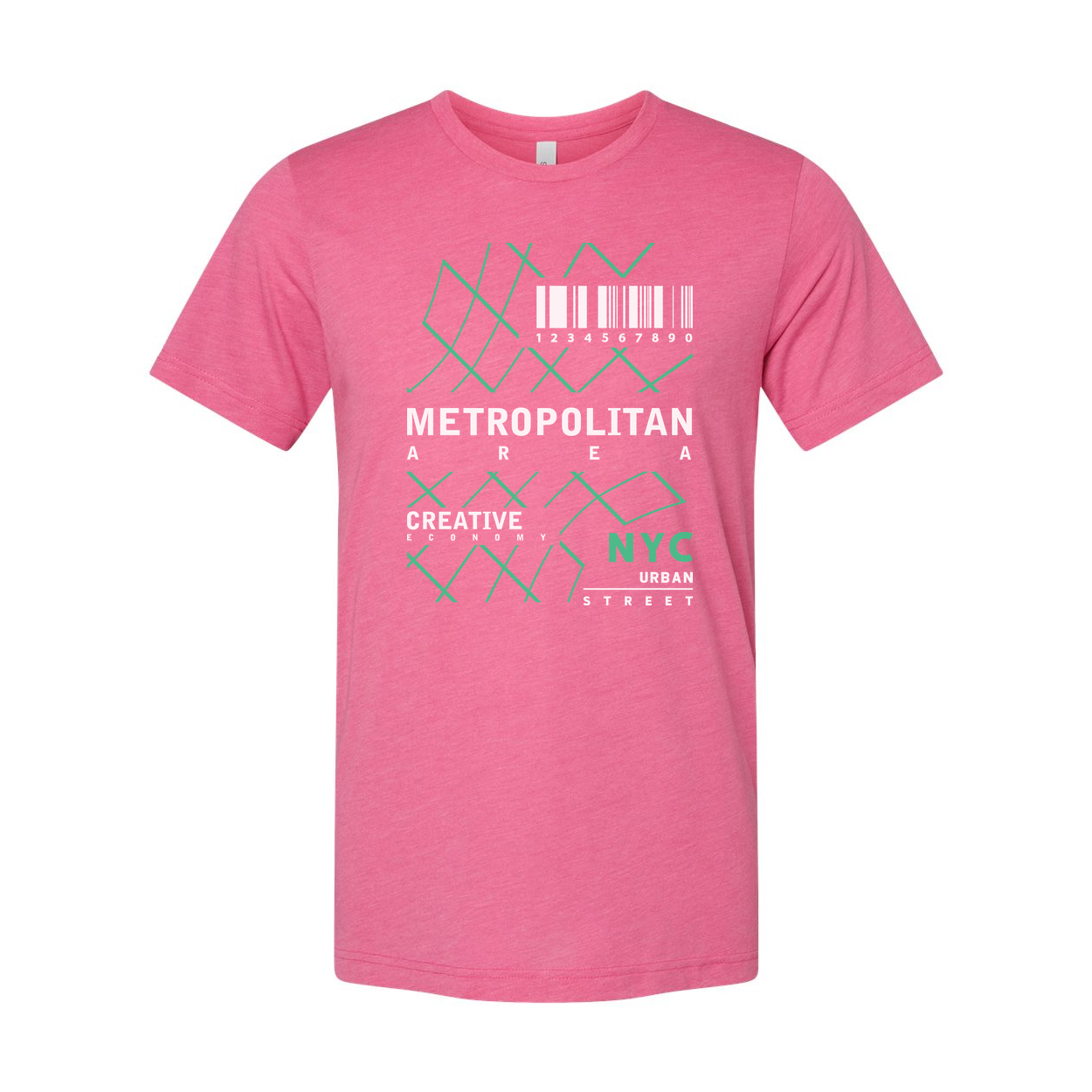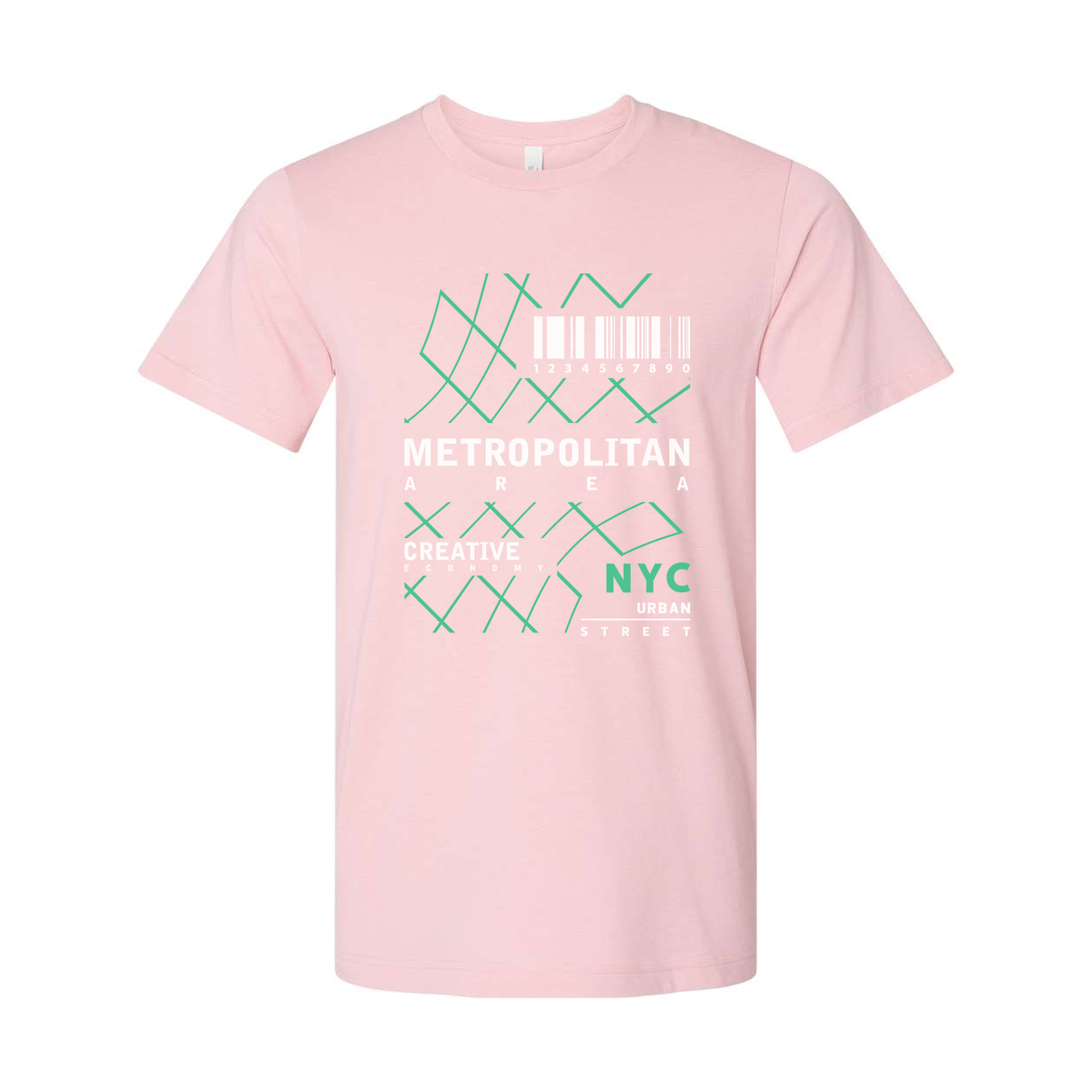 Urban Unisex T Shirt Featuring Geometric Green Barcode Pattern And NYC Street Graphic