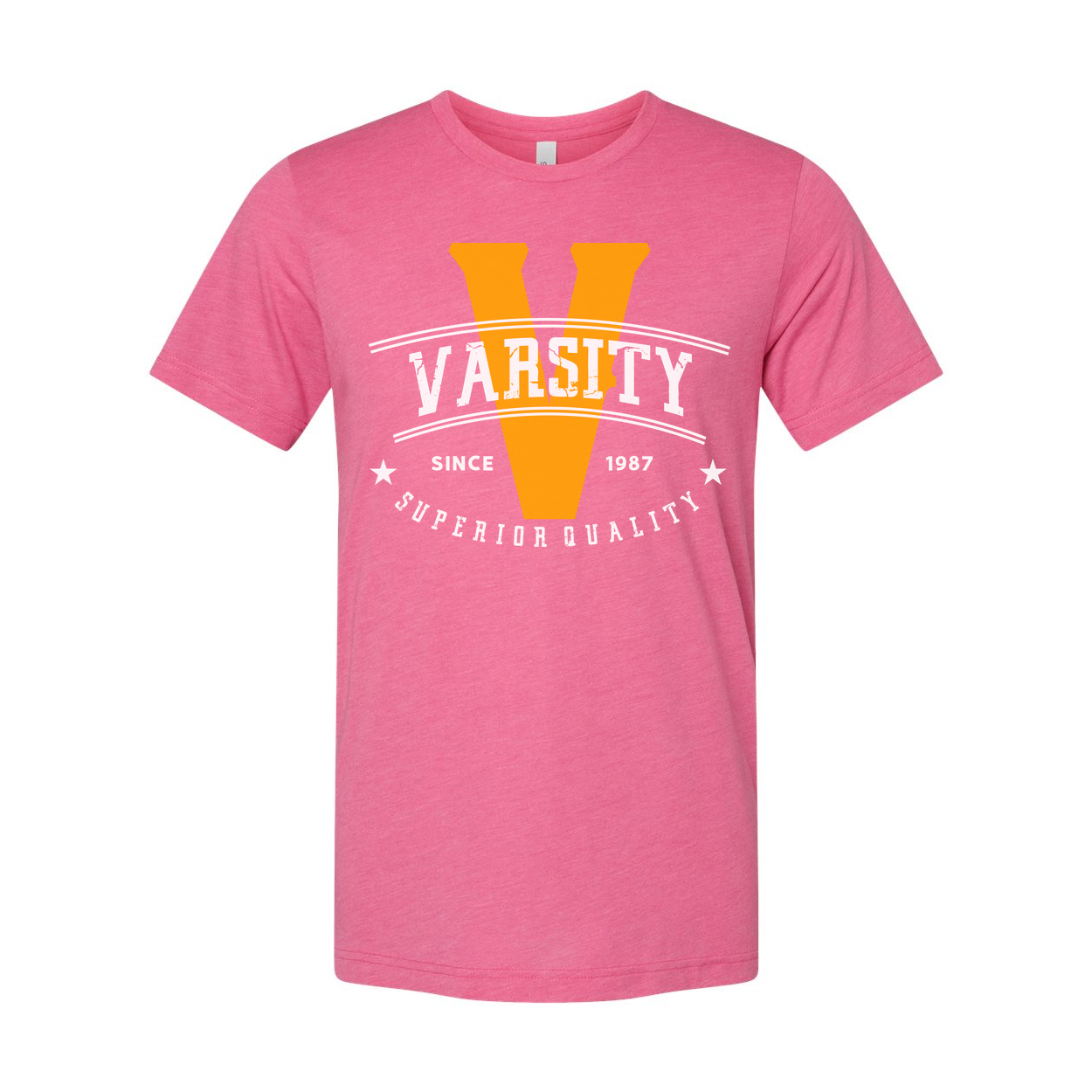 Varsity V Graphic T Shirt Unisex Short Sleeve Tee With Vintage Style Logo Print