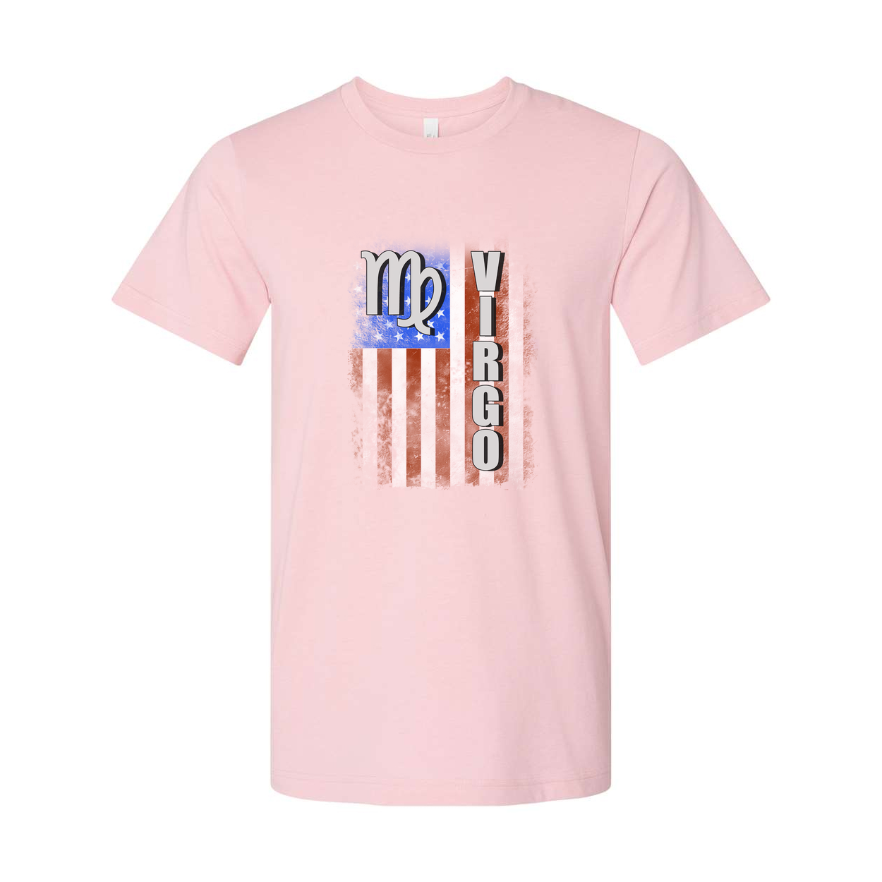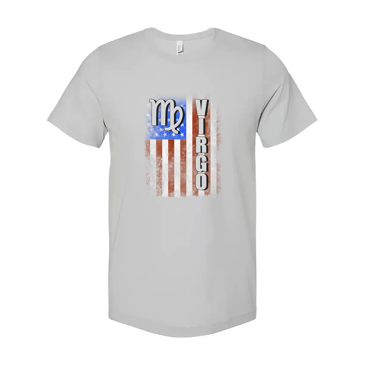 Virgo Zodiac Flag Graphic Unisex T-Shirt With Distressed American Flag Style Stripes