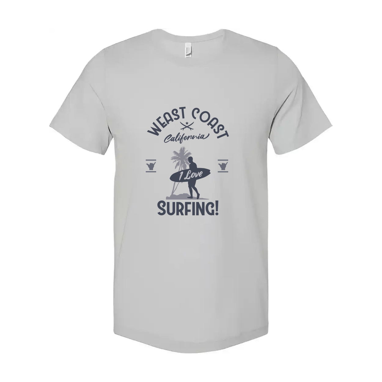 West Coast California Surfing Unisex T Shirt With Surfer And Palm Tree Graphic Print